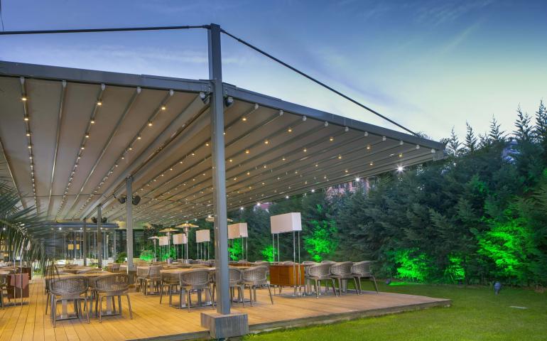 Danach konzentrierte sich Palmiye auf Forschung und Entwicklung, brachte 2004 die erste motorisierte Pergola auf den Markt und 2006 eine Pergola für alle vier Jahreszeiten.