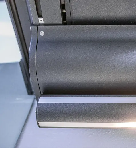 Die UG 200 lässt sich aber nicht nur unter ein Glasdach montieren, sondern kann auch senkrecht montiert zur Beschattung großer Glasflächen eingesetzt werden. Bei Bedarf lässt sie sich auch so montieren, dass das Tuch von unten senkrecht nach oben ausgefahren werden kann. Die UG 200 ist sehr variabel einsetzbar.