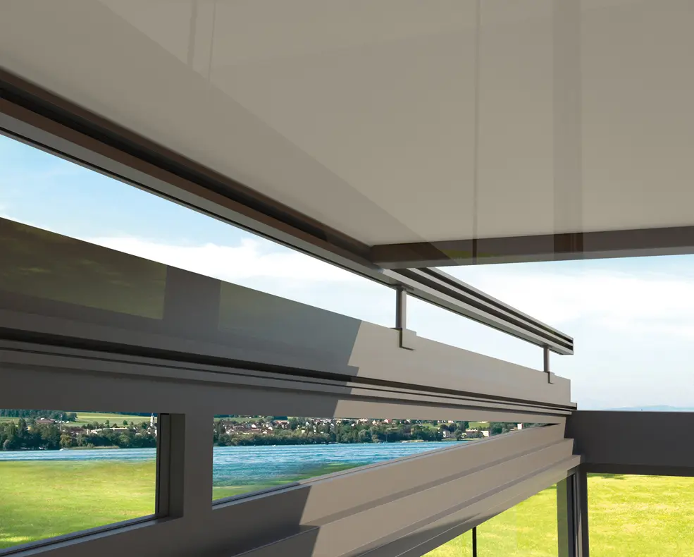 Mit der Leiner UG200 Unterglasmarkise genießen Sie zuverlässigen Blendschutz und eine gleichmäßige Tuchspannung für Ihr Terrassendach oder Wintergarten.