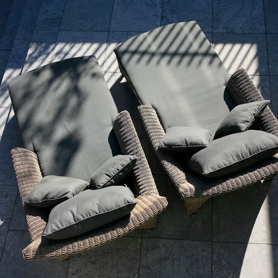 Die von uns vertriebenen Möbelserien sind für die dauerhafte Nutzung im Freien entwickelt. Dank UV-beständiger Stoffe und korrosionsfreier Gestelle sind sie extrem witterungsbeständig; Für die kalte Jahreszeit bieten wir zudem passende Schutzhüllen aus unserer eigenen Manufaktur an.