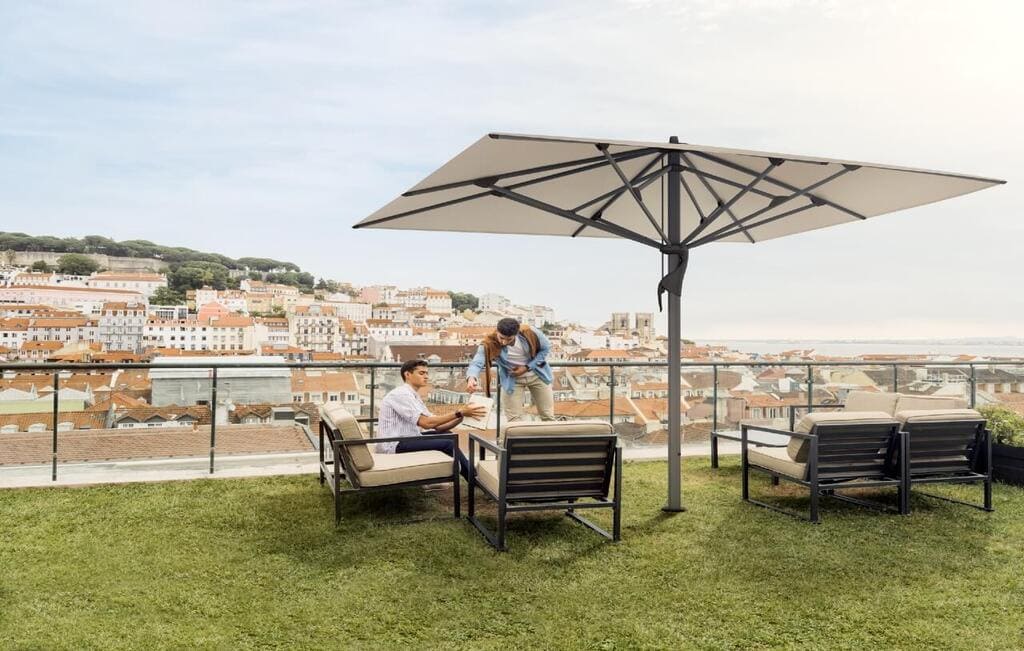 - Große Schirmflächen bis 7 m Durchmesser – umfassender Schutz für Gastronomie & Events.