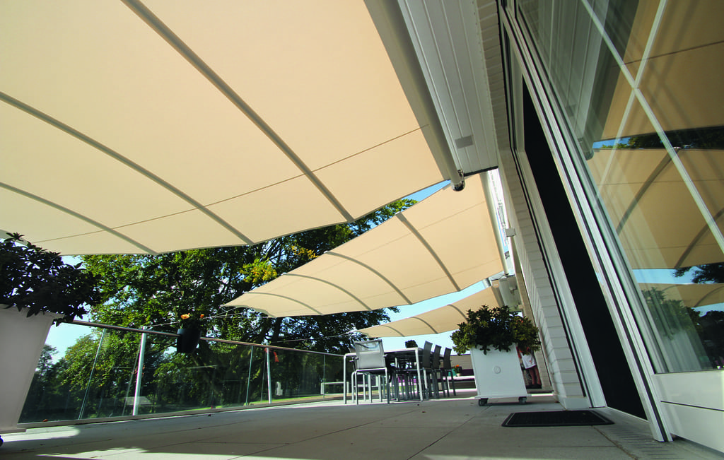 Jeder herkömmliche Sonnenschutz wie z.B. eine Markise muss mit einer ausreichenden Neigung zum Abführen des Regenwassers montiert werden. C4sun Segel verneigen sich nicht.