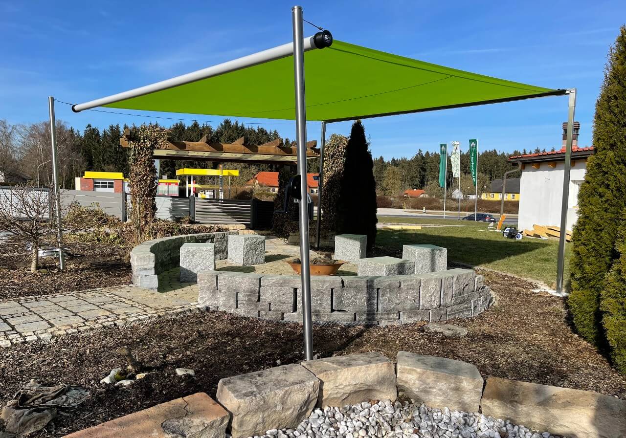 Ein Sonnensegel freistehend ohne Bohren! Beim Shade Frame von Shadesign kommt das Shade Inox System als freistehende Variante zum Einsatz.