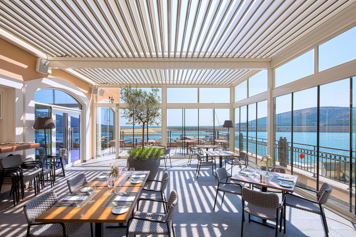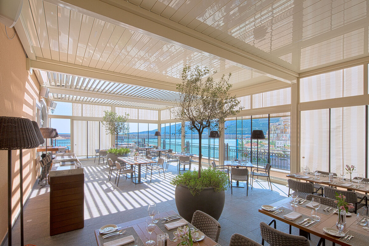 Ja, das System ist perfekt für Restaurants, Cafés oder Hotelterrassen – für wetterunabhängigen Außenbetrieb.
