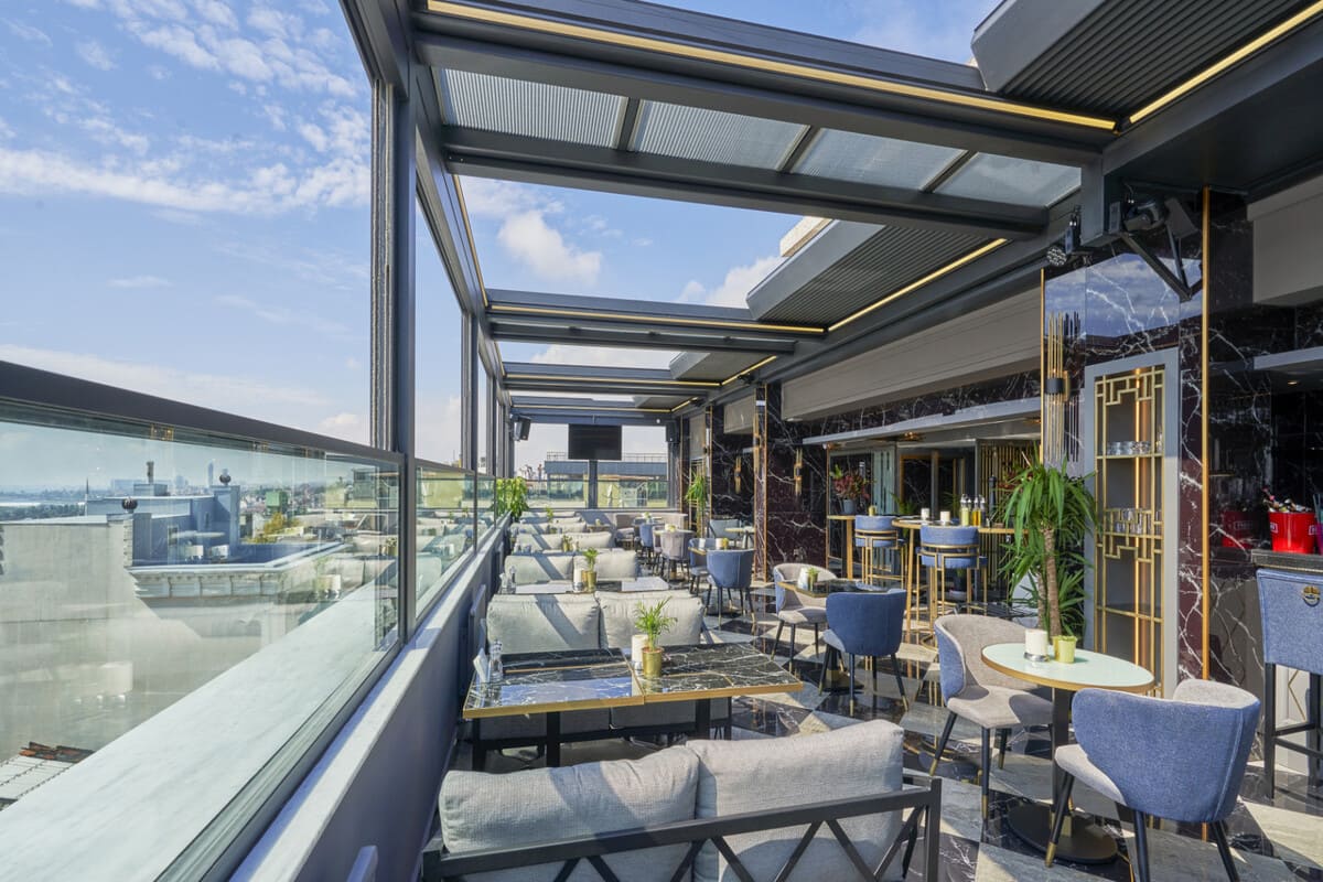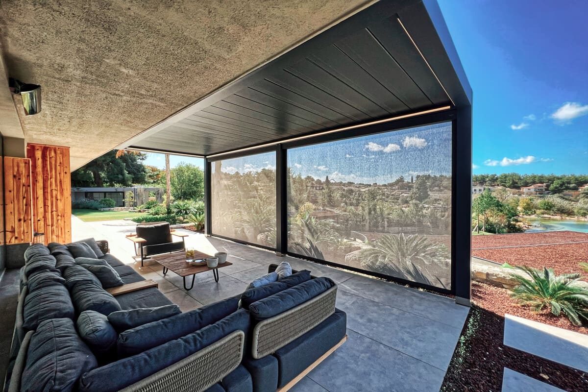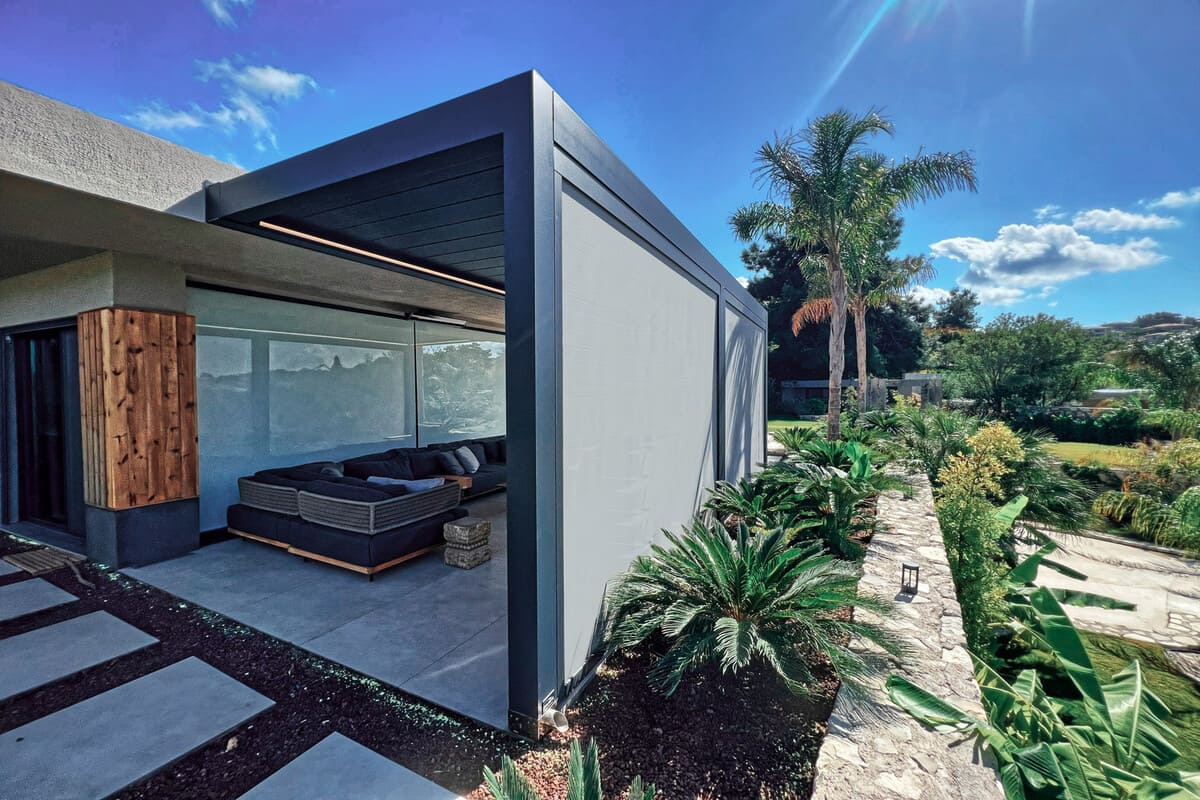 Design trifft Komfort: Das Skyroof Prestige verwandelt Ihre Terrasse in einen stilvollen Rückzugsort bei Sonne, Wind und Regen.