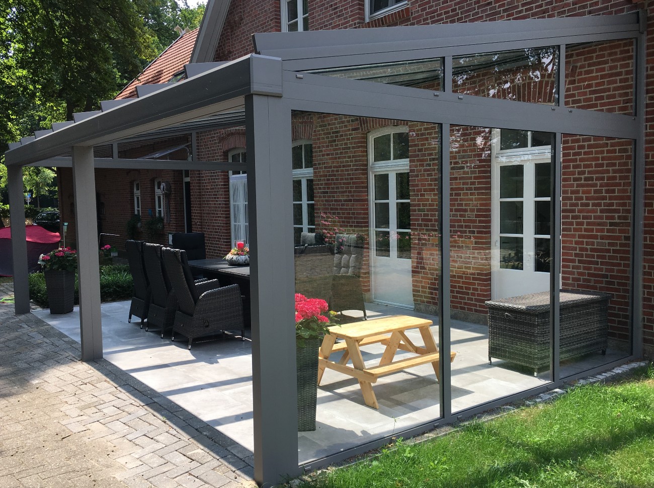 Mit dem Area Exclusiv genießen Sie optimalen Schutz und Transparenz – perfekt für eine stilvolle Erweiterung Ihres Außenbereichs bei jedem Wetter.